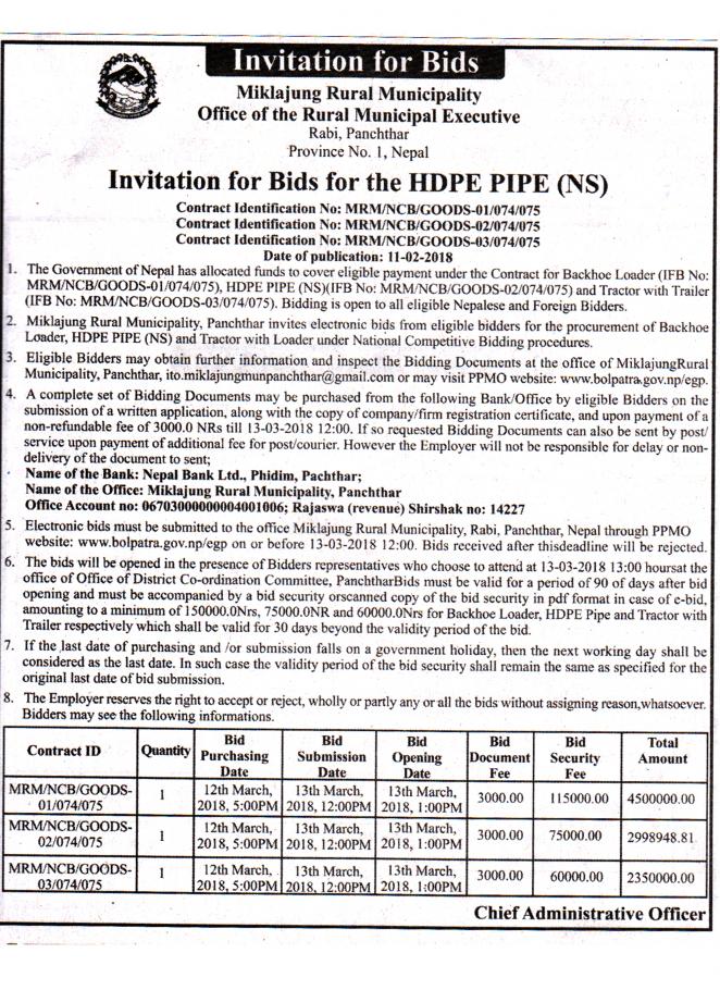चालु आ.व.०८२।८३ को समपुरक अनुदान आयोजना निर्माण कार्यहरुको बोलपत्र ठेक्का आव्हान सूचना ।