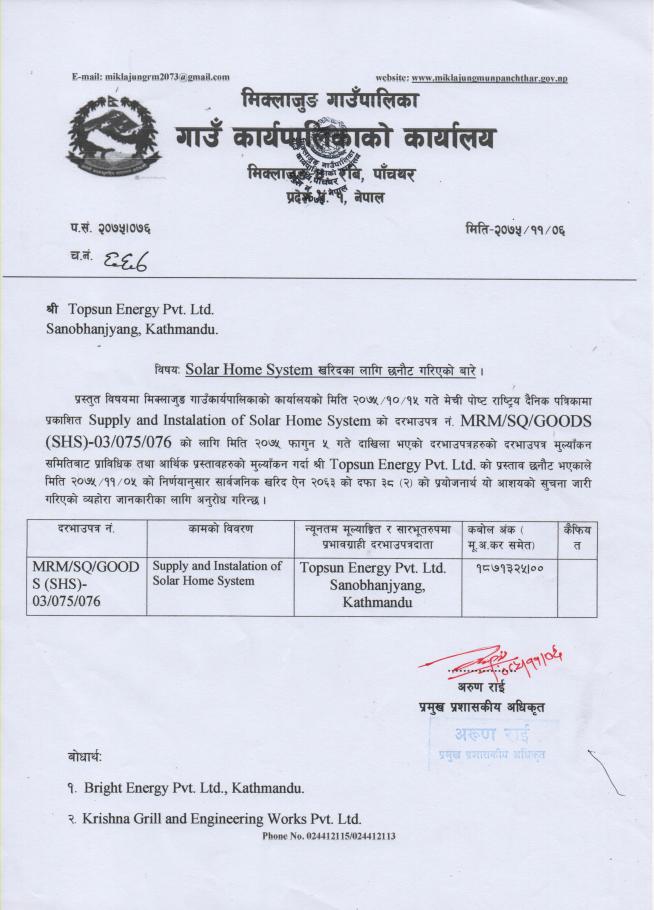 Solar Home System खरिदका लागि छनाैट गरिएकाे बारे ।