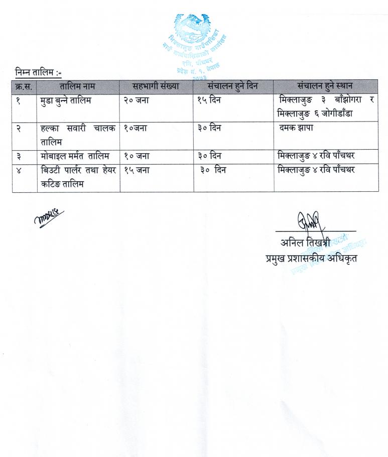 मिक्लाजुङ गाउँपालिका, गाउँ कार्यपालिकाकाे कार्यालय कोशी प्रदेश, रवि, पाँचथर
