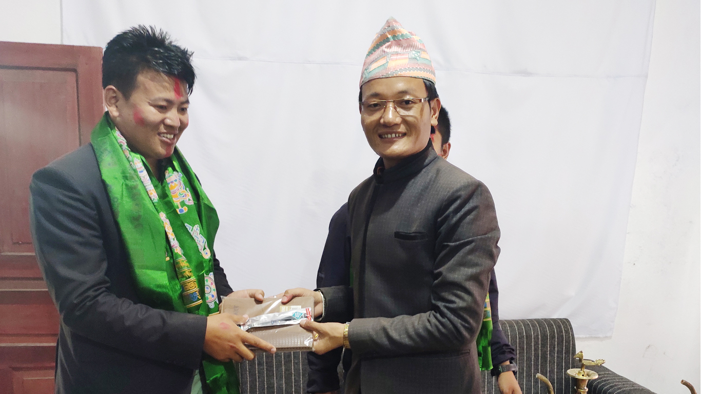 विभिन्न योजनाहरुको मागपत्र सम्माननीय प्रधानमन्त्री के.पी. शर्मा ओलीज्यूलाई बुझाउँनु हुँदै मिक्लाजुङ गाउँपालिकाका अध्यक्ष श्री अमरराज माखिम ।